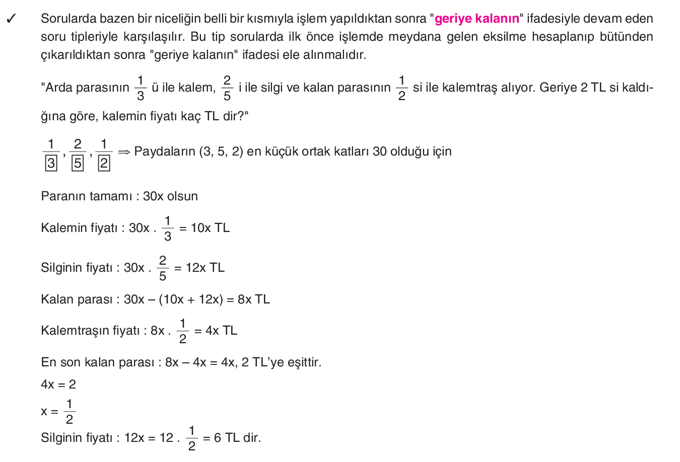 TYT-AYT( YKS ). Sınıf / TYT-AYT( YKS ) / KESİR PROBLEMLERİ